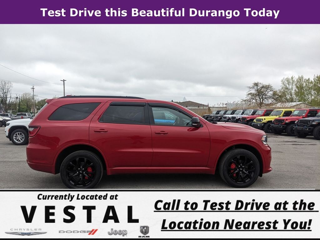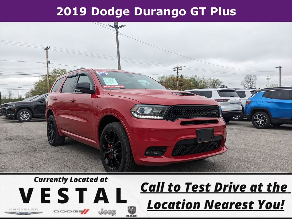 AWD, 1-Yr SiriusXM Guardian Trial, 115V Auxiliary Power Outlet, 180 Amp Alternator, 2nd Row Fold/Tumble Captain Chairs, 2nd Row Mini Console w/Cupholders, 2nd Row Seat Mounted Inboard Armrests, 3.45 Rear Axle Ratio, 3rd Row Floor Mat & Mini Console, 3rd row seats: split-bench, 4-Wheel Disc Brakes, 4G LTE Wi-Fi Hot Spot, 5-Year SiriusXM Traffic Service, 5-Year SiriusXM Travel Link Service, 506 Watt Amplifier, 6 Speakers, 6-Passenger Seating, 8.4" Touchscreen Display, 9 Alpine Amplified Speakers w/Subwoofer, ABS brakes, Air Conditioning, Alloy wheels, AM/FM radio: SiriusXM, Anti-whiplash front head restraints, Apple CarPlay, Apple CarPlay/Android Auto, Auto-Dimming Exterior Driver Mirror, Auto-dimming Rear-View mirror, Automatic temperature control, Black Roof Rails, Blacktop Package, Brake assist, Bright Cargo Area Scuff Pads, Bright Front Door Sill Scuff Pads, Bumpers: body-color, Cloth Low-Back Bucket Seats, Compass, Delay-off headlights, Driver door bin, Driver vanity mirror, Dual front impact airbags, Dual front side impact airbags, Dual Remote USB Port - Charge Only, Electronic Stability Control, Emergency communication system: Roadside Assistance/9-1-1 Call, Exterior Mirrors w/Memory, Exterior Mirrors w/Supplemental Signals, For Details Visit DriveUconnect.com, Four wheel independent suspension, Front anti-roll bar, Front Bucket Seats, Front Center Armrest w/Storage, Front dual zone A/C, Front fog lights, Front License Plate Bracket, Front reading lights, Fully automatic headlights, Gloss Black Badges, Gloss Black Exterior Mirrors, Google Android Auto, GPS Antenna Input, GPS Navigation, GT Gloss Black Badging, HD Radio, Heated door mirrors, Heated Front Seats, Heated Second Row Seats, Heated Steering Wheel, Illuminated entry, Integrated Center Stack Radio, Integrated Roof Rail Crossbars, Integrated Voice Command w/Bluetooth, Knee airbag, Leather Suede Bucket Seats, Low tire pressure warning, Manufacturer's Statement of Origin, Occupant sensing airbag, Outside temperature display, Overhead airbag, Overhead console, Panic alarm, ParkView Rear Back-Up Camera, Passenger door bin, Passenger vanity mirror, Performance Hood, Power 6x9 Multi-Function Foldaway Mirrors, Power 8-Way Driver Memory 6-Way Passenger Seats, Power door mirrors, Power driver seat, Power Driver/Passenger 4-Way Lumbar Adjust, Power Liftgate, Power steering, Power Sunroof, Power windows, Premium Door Trim Panel, Premium Group, Quick Order Package 2BE GT Plus, Radio: Uconnect 4 w/7" Display, Radio: Uconnect 4C Nav w/8.4" Display, Radio/Driver Seat/Mirrors Memory, Rear air conditioning, Rear anti-roll bar, Rear Parking Sensors, Rear reading lights, Rear seat center armrest, Rear window defroster, Rear window wiper, Remote keyless entry, Remote Start System, Security Alarm, SiriusXM Traffic Plus, SiriusXM Travel Link, Speed control, Speed-Sensitive Wipers, Split folding rear seat, Spoiler, Steering wheel mounted audio controls, Sun Visors w/Illuminated Vanity Mirrors, Tachometer, Telescoping steering wheel, Tilt steering wheel, Traction control, Trip computer, Universal Garage Door Opener, USB Host Flip, Variably intermittent wipers, Wheels: 20" x 8.0" High Gloss Black Aluminum (WHB), Wheels: 20" x 8.0" Satin Carbon - Design 1, AWD. Odometer is 42330 miles below market average! 2019 Dodge Durango 4D Sport Utility GT Plus Redline 2 Coat Pearl AWD 8-Speed Automatic 3.6L V6 24V VVT
