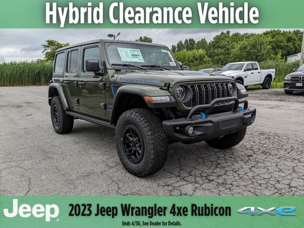 Sarge Green Clearcoat 2023 Jeep Wrangler 4WD 8-Speed Automatic 2.0L I4 DOHC 2.0L I4 DOHC, #1 Seat Foam Cushion, 20th Anniversary Rubicon 4xe Suspension, 4-Wheel Disc Brakes, 4.10 Rear Axle Ratio, 7 & 4 Pin Wiring Harness, 700 Amp Maintenance Free Battery, 9 Speakers, ABS brakes, Air Conditioning, Alloy wheels, AM/FM radio: SiriusXM, Apple CarPlay/Android Auto, Auto-dimming Rear-View mirror, Automatic temperature control, Auxiliary Switches, Black 3-Piece Hard Top, Bluetooth, Body Color Rubicon Highline Flare, Brake assist, Class II Receiver Hitch, Cold Weather Group, Compass, Corning Gorilla Glass, Delay-off headlights, Driver door bin, Driver vanity mirror, Dual front impact airbags, Dual front side impact airbags, Dual Top Group, Electronic Stability Control, Emergency communication system: SiriusXM Guardian, Freedom Panel Storage Bag, Front anti-roll bar, Front Bucket Seats, Front Center Armrest w/Storage, Front dual zone A/C, Front fog lights, Front License Plate Bracket, Front MOPAR Grab Handles, Front reading lights, Fully automatic headlights, Garage door transmitter, Heated door mirrors, Heated Front Seats, Heated Steering Wheel, Illuminated entry, Integrated Off-Road Camera, Integrated roll-over protection, Leather Wrapped Park Brake Handle, Leather Wrapped Shift Knob, Low tire pressure warning, MOPAR 3 Bar Bumper Hoop, MOPAR All-Weather Floor Mats, MOPAR Grab Handle Kit, MOPAR Hinge-Gate Reinforcement, MOPAR Rubicon 20th Anniversary Tool Kit, Nappa Leather Seats, Navigation System, Occupant sensing airbag, Outside temperature display, Panic alarm, ParkView Rear Back-Up Camera, Passenger door bin, Passenger vanity mirror, Performance Suspension, Power door mirrors, Power steering, Power windows, Premium Black Sunrider Soft Top w/Dual Top Group, Premium Cloth Low-Back Bucket Seats, Premium Door Trim Panel, Premium Wrapped Red I/P Bezels, Quick Order Package 29T Rubicon 20th Anniversary, Radio data system, Radio: Uconnect 4C Nav w/8.4" Display, Rear anti-roll bar, Rear MOPAR Grab Handles, Rear reading lights, Rear Window Defroster, Rear Window Wiper/Washer, Red Interior Accents, Red Seat Belt, Remote keyless entry, Remote Start System, Rubicon 20th Anniversary, Rubicon 20th Anniversary Grille, Rubicon 20th Anniversary Shifter Medallion, Rubicon 20th Anniversary Side Hood Decal 4xe, Rubicon 20th Anniversary Swing Gate Plaque, Rubicon 20th Anniversary Top Hood Decal 4xe, Security system, Speed control, Split folding rear seat, Steel Bumper Group, Steel Front Bumper, Steel Rear Bumper, Steering wheel mounted audio controls, Tachometer, Telescoping steering wheel, Tilt steering wheel, Traction control, Trailer Tow & Aux Switch Group, Trip computer, Variably intermittent wipers, Wheels: 17" x 7.5" Black Beadlock Capable, Wheels: 17" x 7.5" Machined w/Black Pockets, 2.0L I4 DOHC.