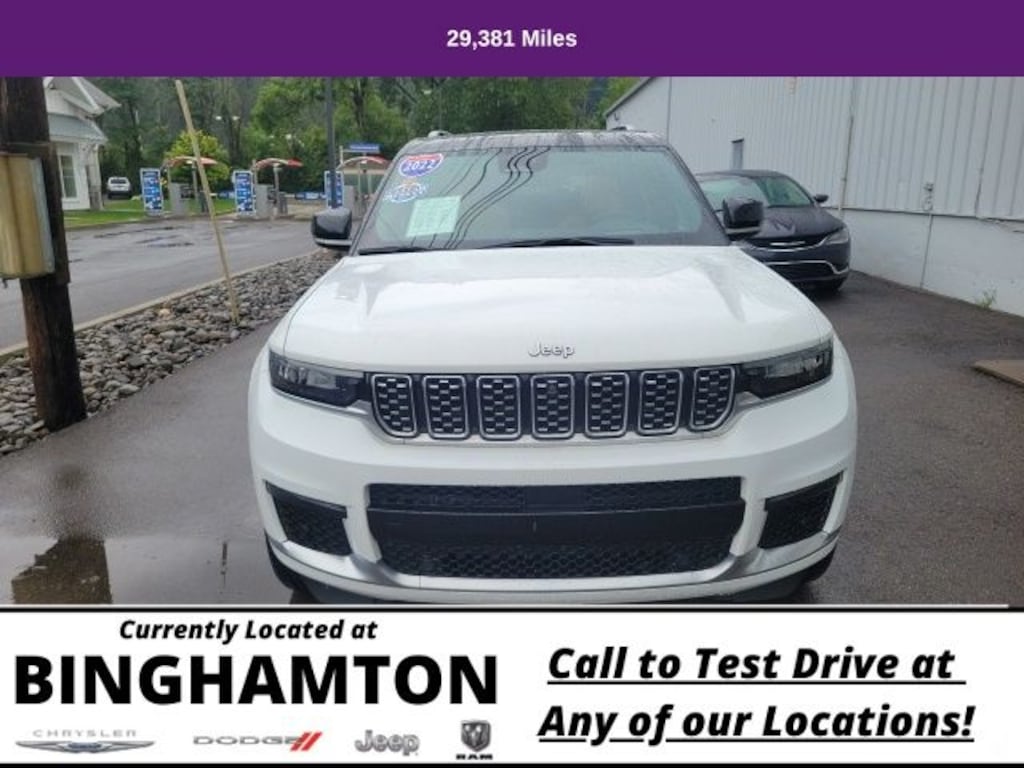 Save Time at the Dealership by Customizing your Deal Online!, 1 Owner, Accident Free History, Super Low Miles, 2nd Row Manual Window Shades, Advanced Protech Group IV, Conventional Differential Rear Axle, Electronic Limited Slip Differential Delete, Heads-Up Display, Interior Rear Facing Camera, Luxury Tech Group V, MOPAR Finishing Package, MOPAR Front Splash Guards, MOPAR Paint Protection Film, MOPAR Rear Splash Guards w/Jeep Logo, Night Vision/Pedestrian-Animal Detection, Quick Order Package 22S, Rearview Autodim Digital Display Mirror, Wireless Charging Pad, 10 Speakers, 3.45 Rear Axle Ratio, 3rd row seats: split-bench, 4-Wheel Disc Brakes, ABS brakes, Active Noise Control System, Adaptive suspension, Air Conditioning, Alloy wheels, AM/FM radio: SiriusXM with 360L, Anti-whiplash front head restraints, Audio memory, Auto High-beam Headlights, Auto-dimming door mirrors, Auto-dimming Rear-View mirror, Auto-leveling suspension, Automatic temperature control, Brake assist, Bumpers: body-color, Compass, Delay-off headlights, Driver door bin, Driver vanity mirror, Dual front impact airbags, Dual front side impact airbags, Electronic Stability Control, Emergency communication system, Four wheel independent suspension, Front anti-roll bar, Front Bucket Seats, Front Center Armrest w/Storage, Front dual zone A/C, Front fog lights, Front reading lights, Fully automatic headlights, Garage door transmitter, Genuine wood dashboard insert, Genuine wood door panel insert, Heated door mirrors, Heated front seats, Heated rear seats, Heated steering wheel, Illuminated entry, Knee airbag, Leather steering wheel, Low tire pressure warning, Memory seat, Nappa Leather Seats, Navigation System, Normal Duty Suspension, Occupant sensing airbag, Outside temperature display, Overhead airbag, Overhead console, Panic alarm, Passenger door bin, Passenger vanity mirror, Power door mirrors, Power driver seat, Power Fold Seatbacks, Power Liftgate, Power moonroof, Power passenger seat, Power steering, Power windows, Radio data system, Radio: Uconnect 5 Nav w/10.1" Display, Rain sensing wipers, Rear air conditioning, Rear anti-roll bar, Rear dual zone A/C, Rear reading lights, Rear seat center armrest, Rear window defroster, Rear window wiper, Reclining 3rd row seat, Remote keyless entry, Security system, Speed control, Speed-Sensitive Wipers, Split folding rear seat, Spoiler, Steering wheel memory, Steering wheel mounted audio controls, Tachometer, Telescoping steering wheel, Tilt steering wheel, Traction control, Trip computer, Turn signal indicator mirrors, Two Tone Paint Group, Variably intermittent wipers, Ventilated front seats, Voltmeter, Wheels: 20" x 8.5" Fully Painted Aluminum Silver, Loaded, 2nd Row Manual Window Shades, Advanced Protech Group IV, Conventional Differential Rear Axle, Electronic Limited Slip Differential Delete, Heads-Up Display, Interior Rear Facing Camera, Luxury Tech Group V, MOPAR Finishing Package, MOPAR Front Splash Guards, MOPAR Paint Protection Film, MOPAR Rear Splash Guards w/Jeep Logo, Night Vision/Pedestrian-Animal Detection, Quick Order Package 22S, Rearview Autodim Digital Display Mirror, Wireless Charging Pad.