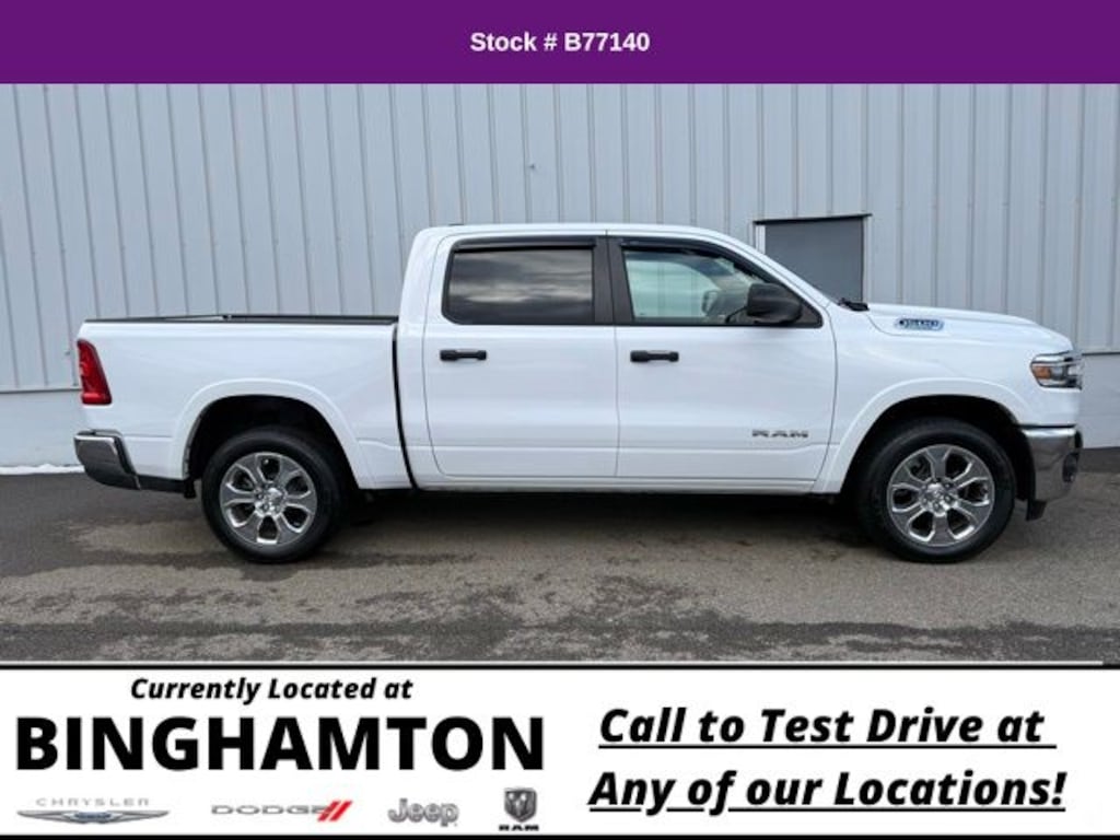 Odometer is 10671 miles below market average! 2025 Ram 1500 4D Crew Cab Big Horn/Lone Star 4WD 8-Speed Automatic 3.6L V6 24V VVT Bright White Clearcoat 19/24 City/Highway MPG