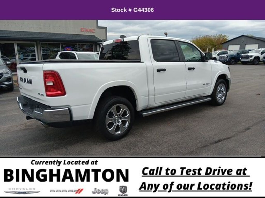 Odometer is 1996 miles below market average! 2025 Ram 1500 4D Crew Cab Big Horn/Lone Star 4x4 4WD 8-Speed Automatic 3.0L I6 Bright White Clearcoat 19/24 City/Highway MPG